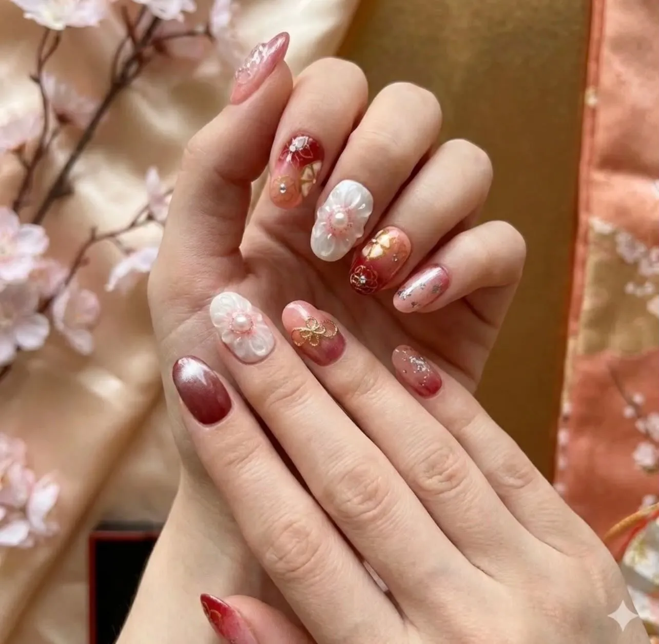 We create custom nail tips for traditional Japanese attire occasions such as furisode (long-sleeved kimono for young women), coming-of-age ceremonies, hakama (traditional divided skirt), and formal gatherings.